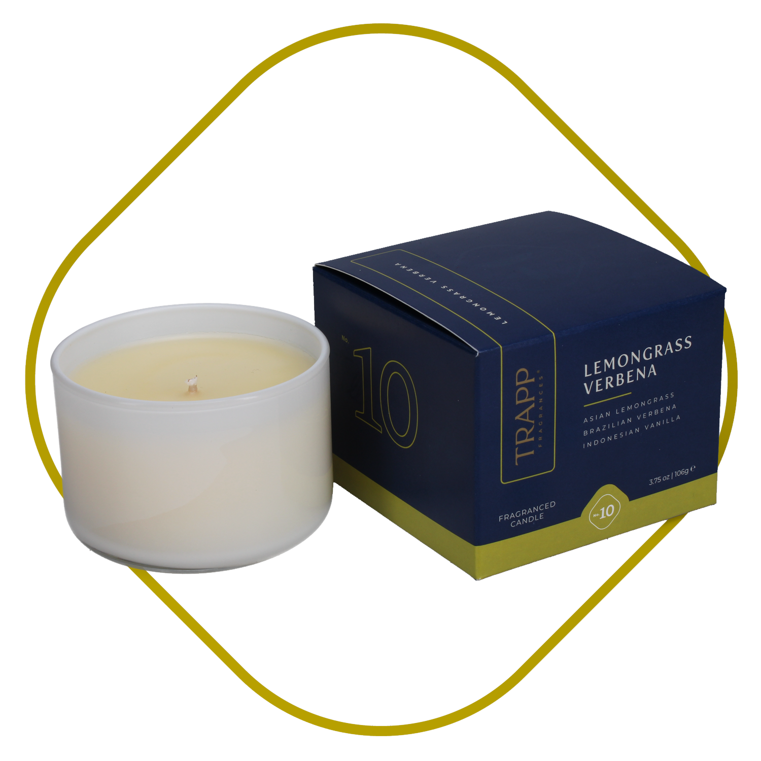 Elevate your environment by filling a room with premium Trapp fragrance. These fragrant Lemongrass Vebena candles feature a soy wax blend for a cleaner burn to enhance your fragrance experience. The 3.75oz size burns for up to 30 hours of your favorite fragrance or the chance to try something new.